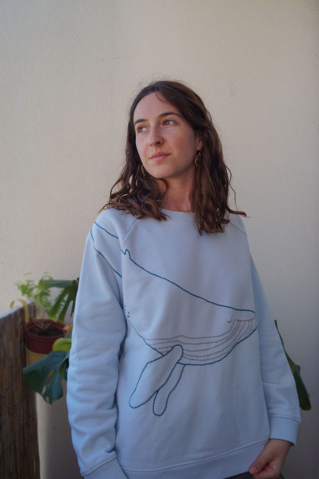 Sweat baleine pour les amoureux de la mer et des créatures marines. Pièce unique, brodé à la main avec soin dans mon atelier de Montpellier.
