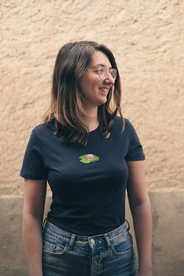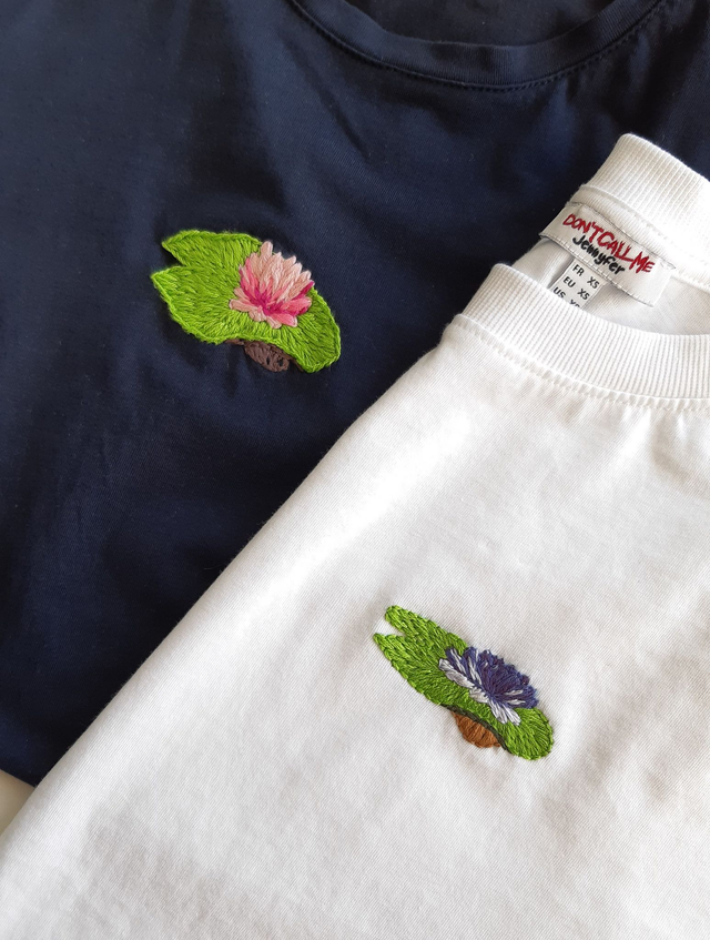 T-shirt brodé main - Nénuphar